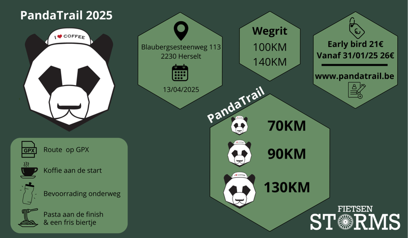 Op 13 april 2025 organiseert het Fietsen Storms team de PandaTrail gravel ride doorheen de prachtige Hagelandse fruitstreek. We blijven trouw aan ons beproefde recept van afgelopen jaar!